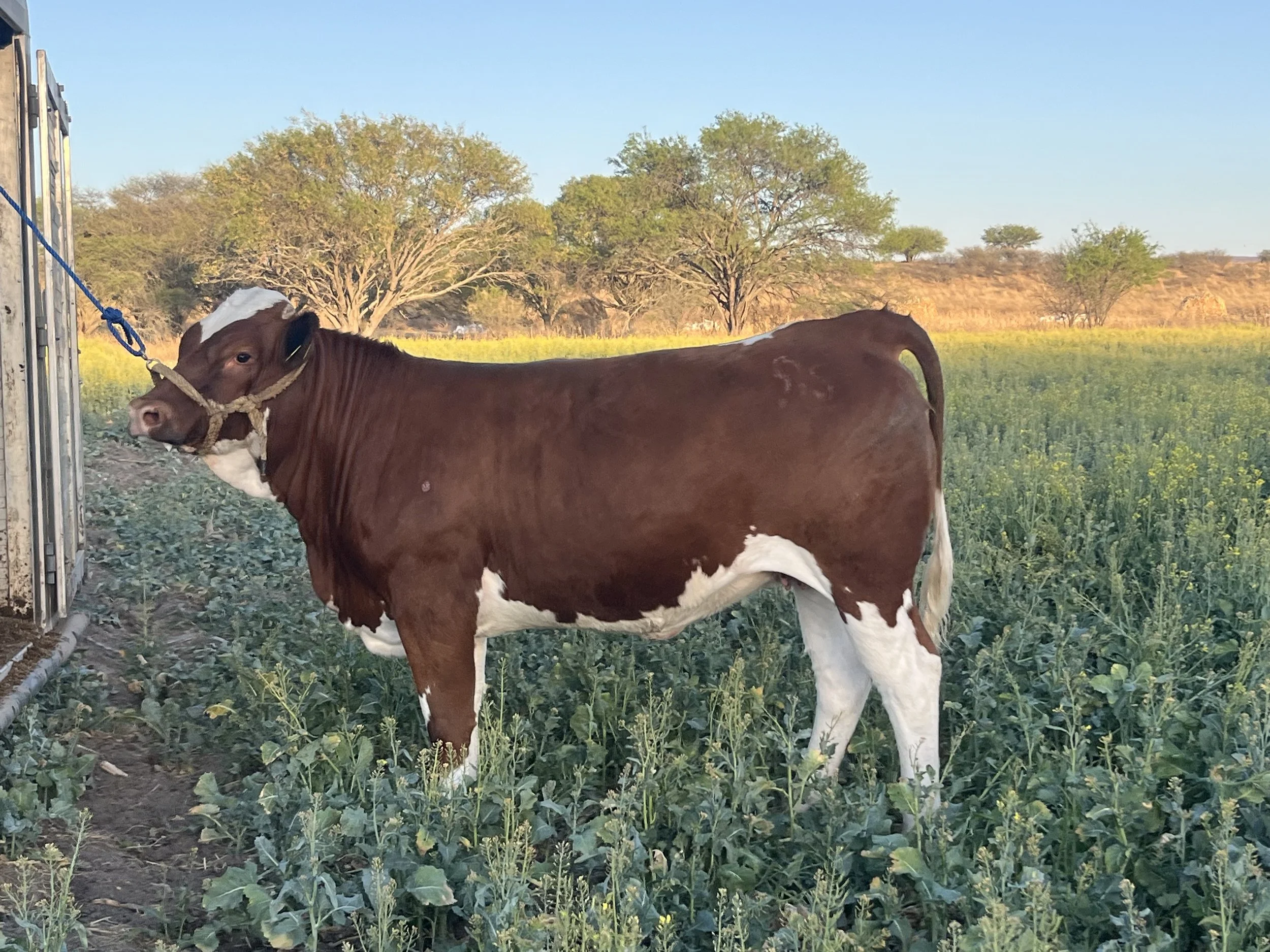 Esta es una de nuestras hembras estelares. Una hembra con esa feminidad pero con ese porte elegante que una combinación de dos de nuestras hembras fundadoras del rancho. Su madre es hija de una vaca importada de Texas de la ganadería Buzzard Hollow Ranch en Granbury, Texas. El rancho termino su programa ganadero y el que fue encargado es señor Fred opto por seguir la genética Simmental pero ahora con el gen melon, “Linda” es una opción para seguir la próxima generación de ganado Fleckvieh 100% . Esta hembra es hija de la M297143 una vaca muy productiva en diversas condiciones de campo. Revisen la genética que porta la madre! Es una vaca mantenida muy paridora por parte de su madre Audra que desciende de las lines Expert. Por lado de su padre, uno de nuestros primeros toros que decidimos retenerlo por su descendencia de las lineas Hafke abuelo de su padre el M291512. Esta hembra empezará en un mínimo de $40,000 garantía de preñes. Se entrega el registro acabando de pagar el animal.